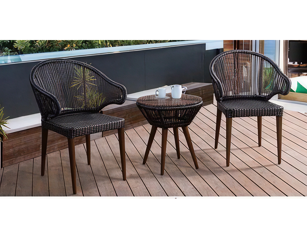 | サイズ: | テーブル Φ420㎜ 高さ450㎜ 椅子2脚 540㎜×560㎜×770㎜ |