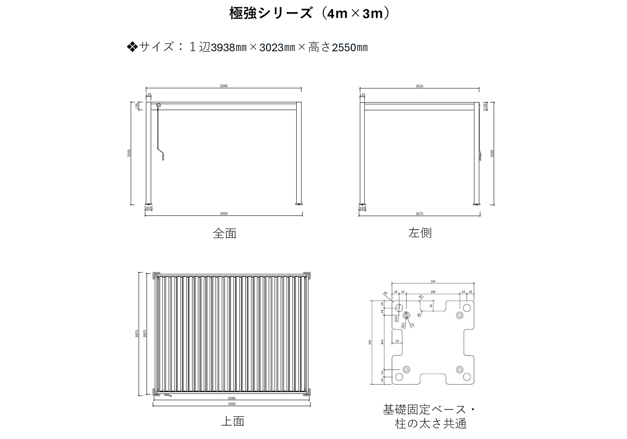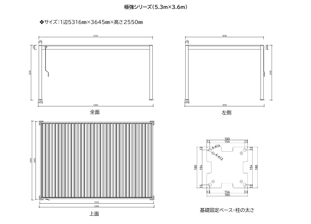 | 耐風圧強度: | 32m/s相当(3m×3m、4m×3m) 34m/s相当(5.3m×3.6m×高さ2.5m) |